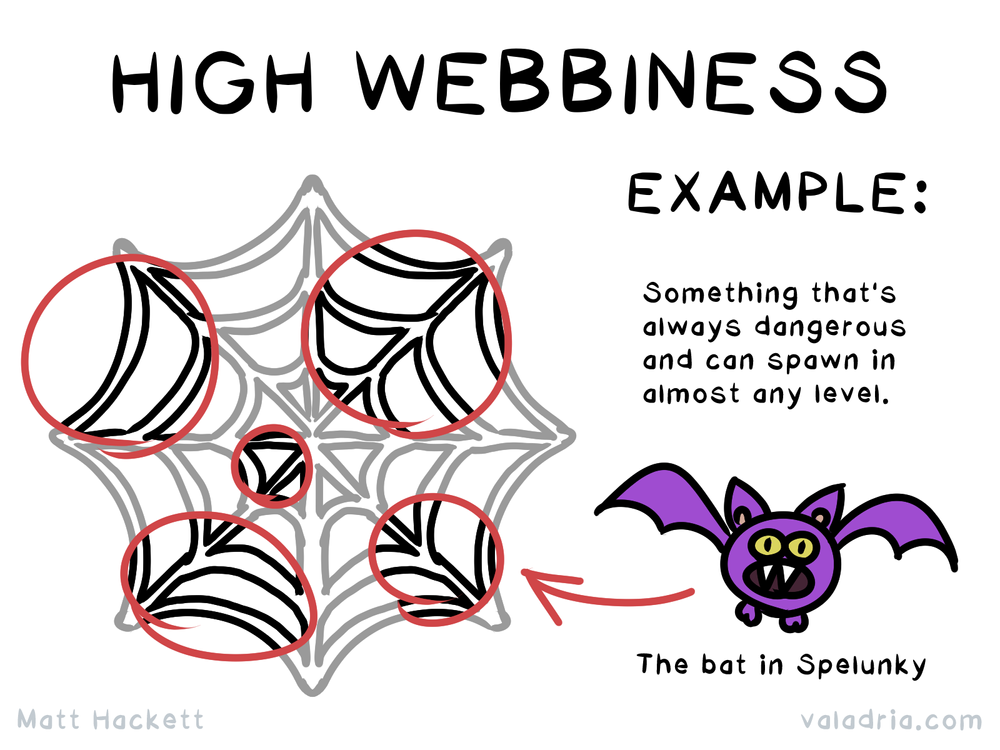 I've been using the term webbiness for years, but 2025 is when I finally wrote, drew, and talked about it. I swear it's a helpful game design term to consider when working on your game, especially for us indies: