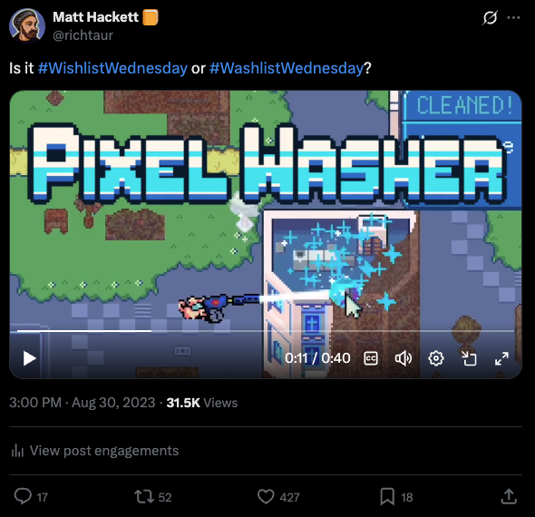 - June 2023: 🫧 Weekend game jam: Pixel Washer